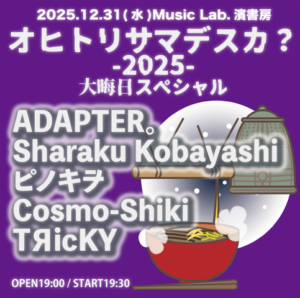 【出演】ADAPTER。/ Sharaku Kobayashi / ピノキヲ / Cosmo-Shiki / TЯicKY