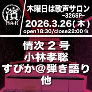 3-26 BAR濱書房~木曜日は歌声サロン~326SP LIVE&配信