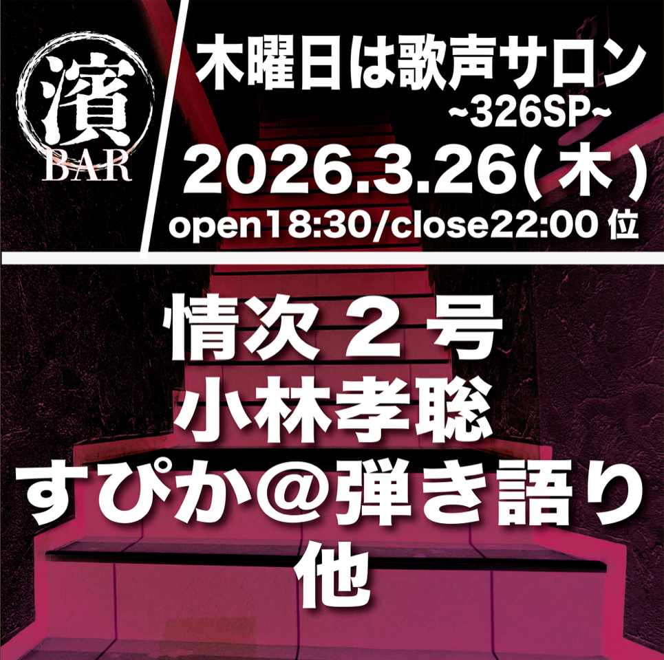 3-26 BAR濱書房~木曜日は歌声サロン~326SP LIVE&配信